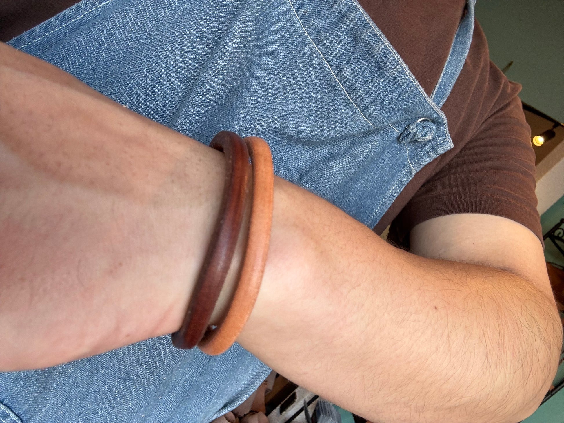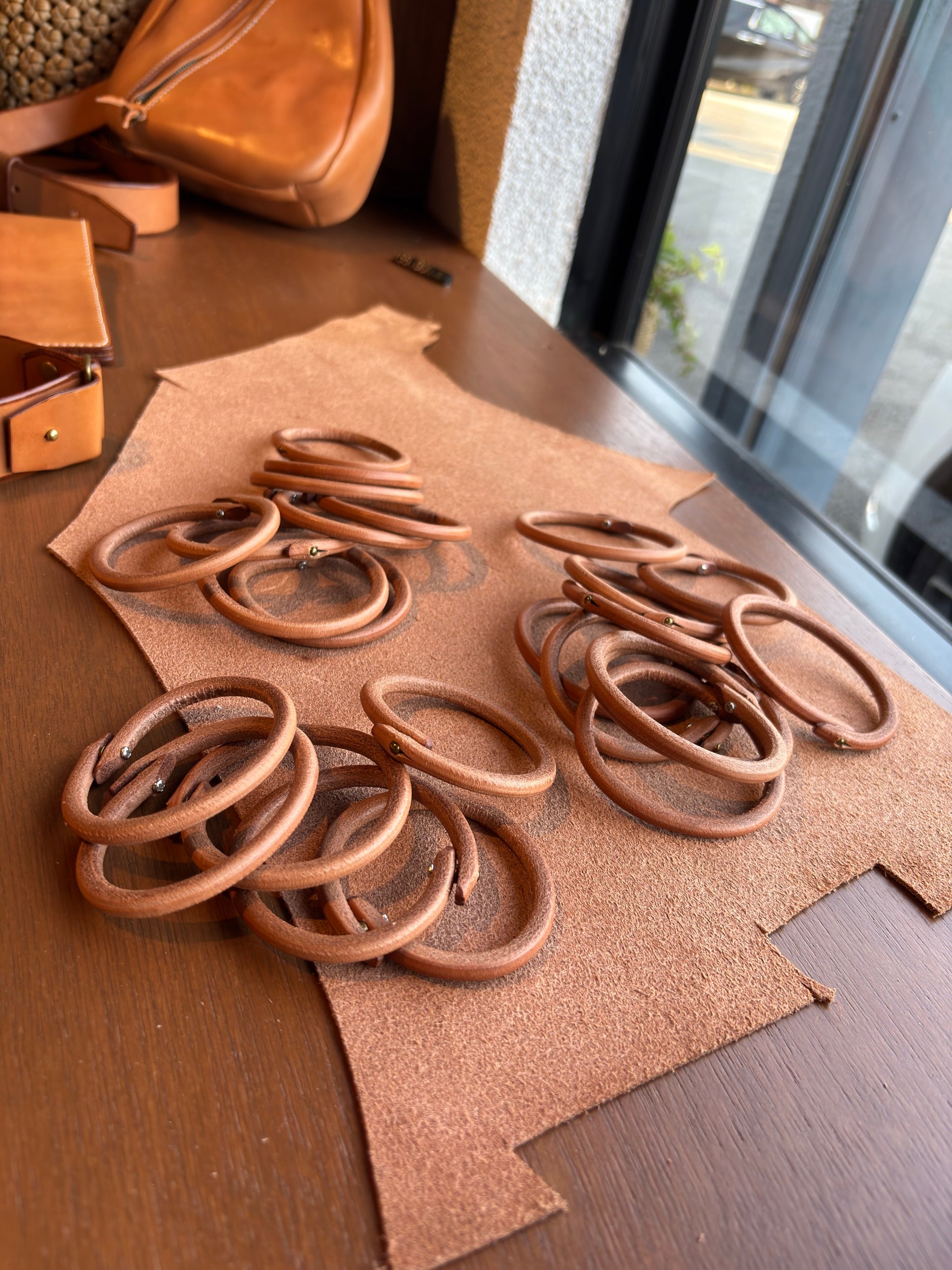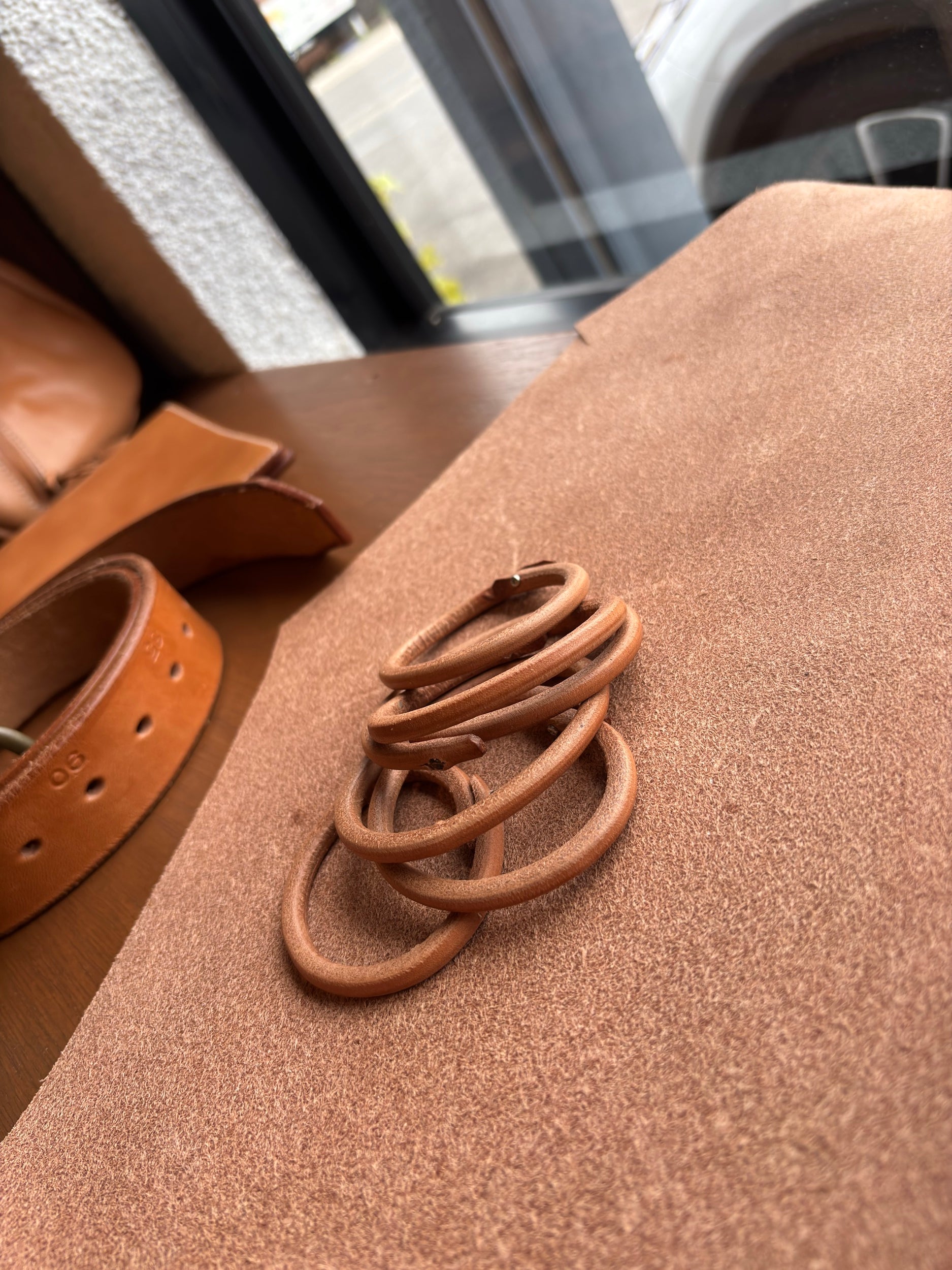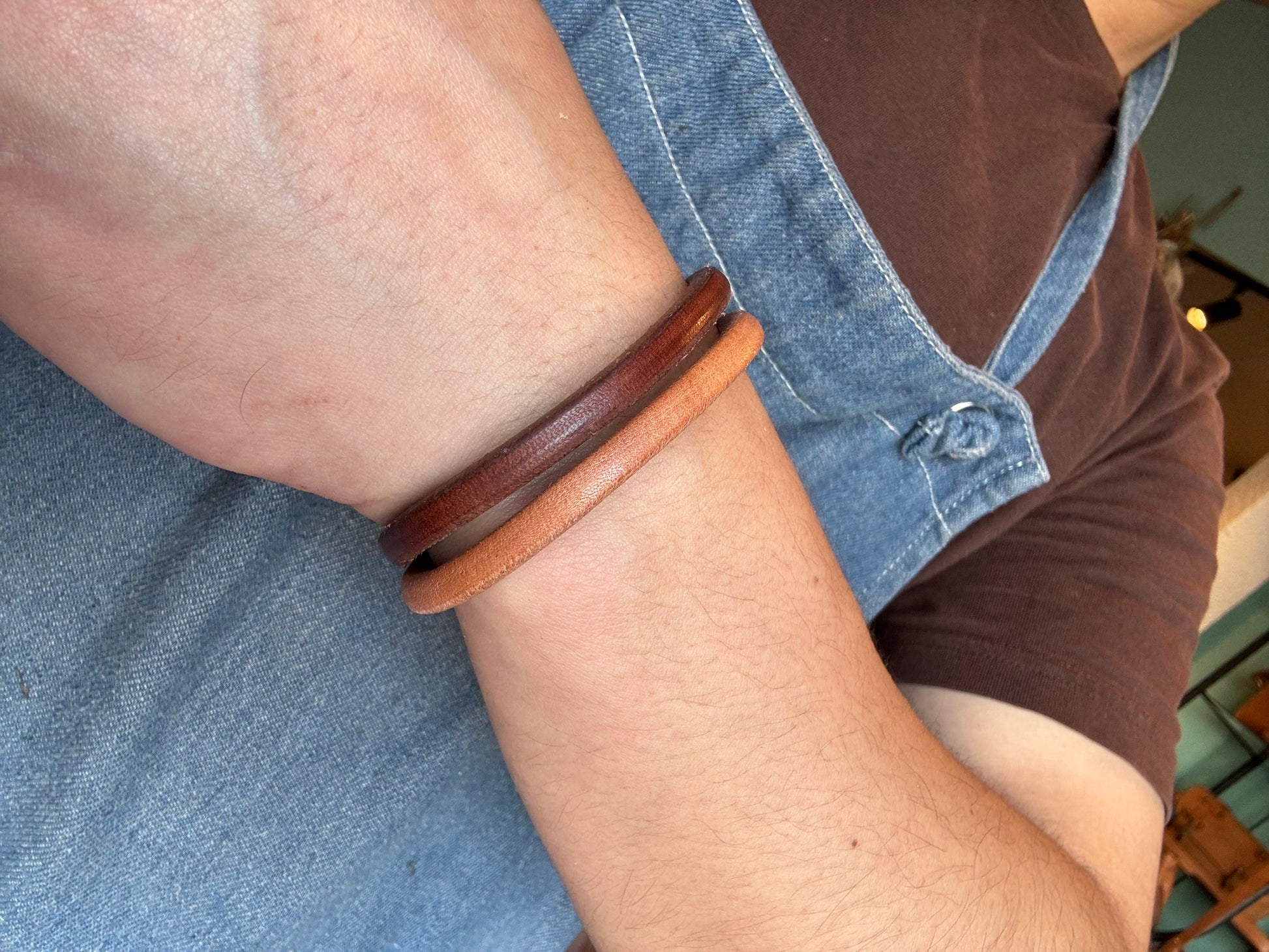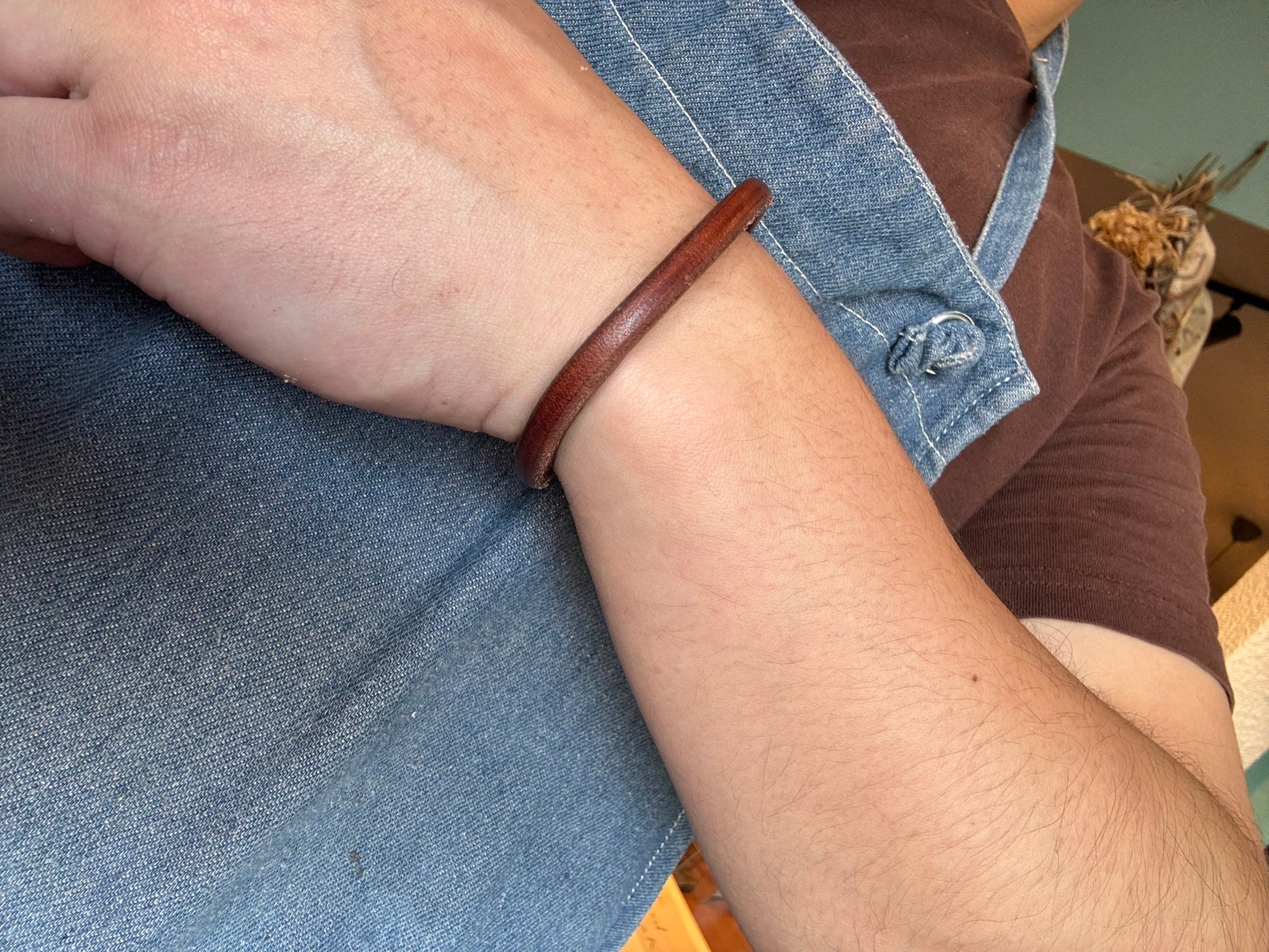 シンプルな革ブレスレットです。経年変化を楽しめます。