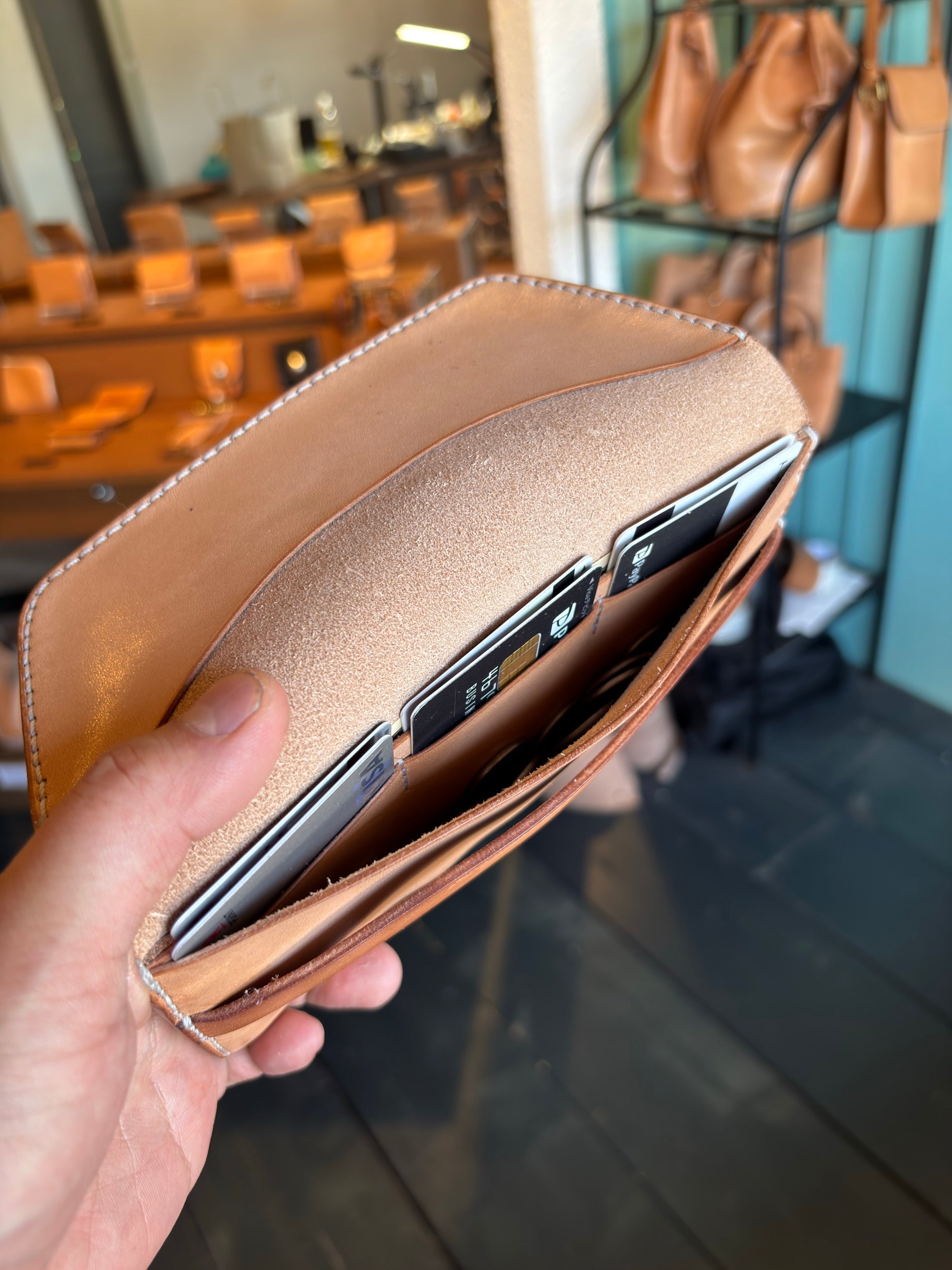 カードポケットは6ポケットで裏表に三箇所づつあります。お札、小銭はそれぞれのポケットに入ります。