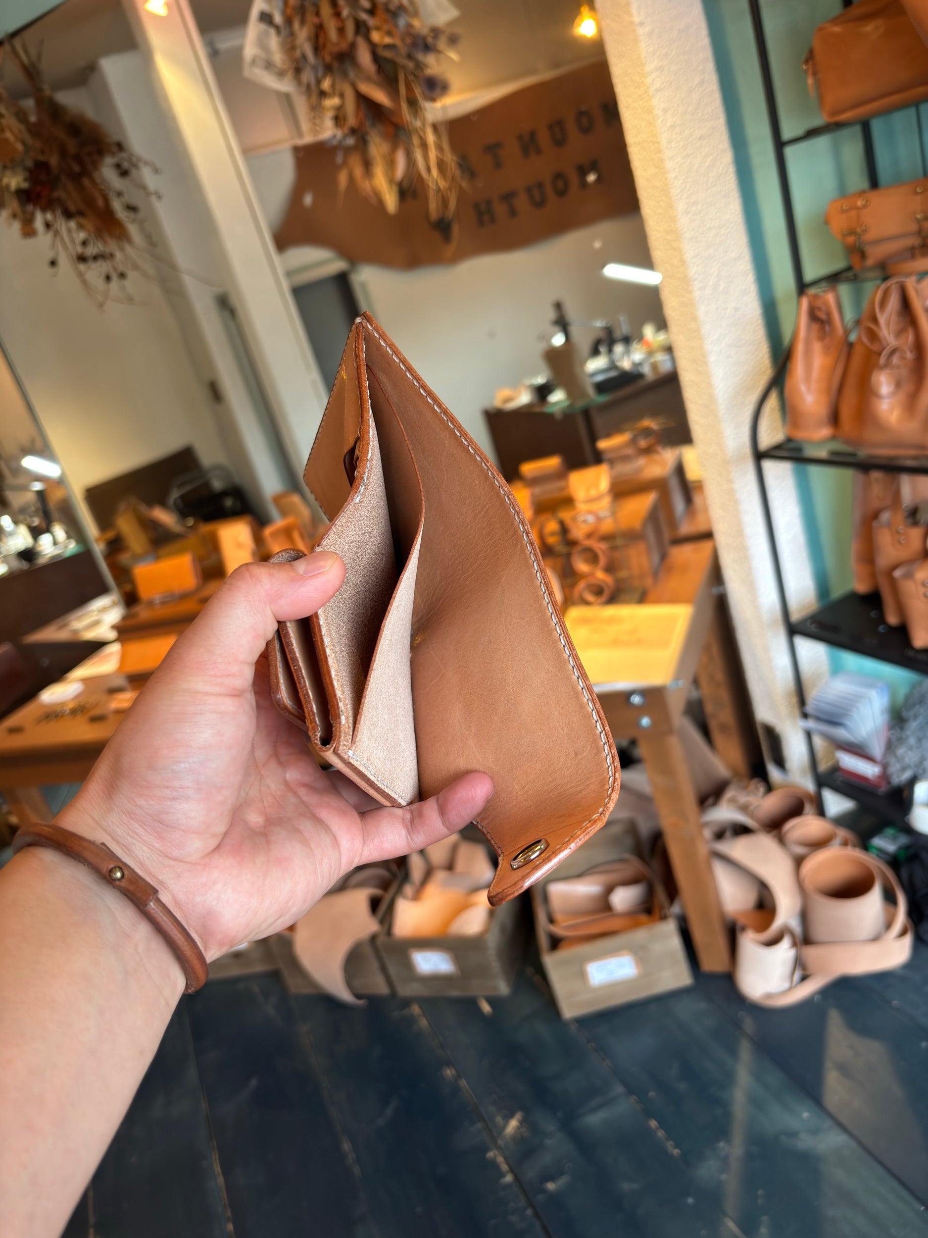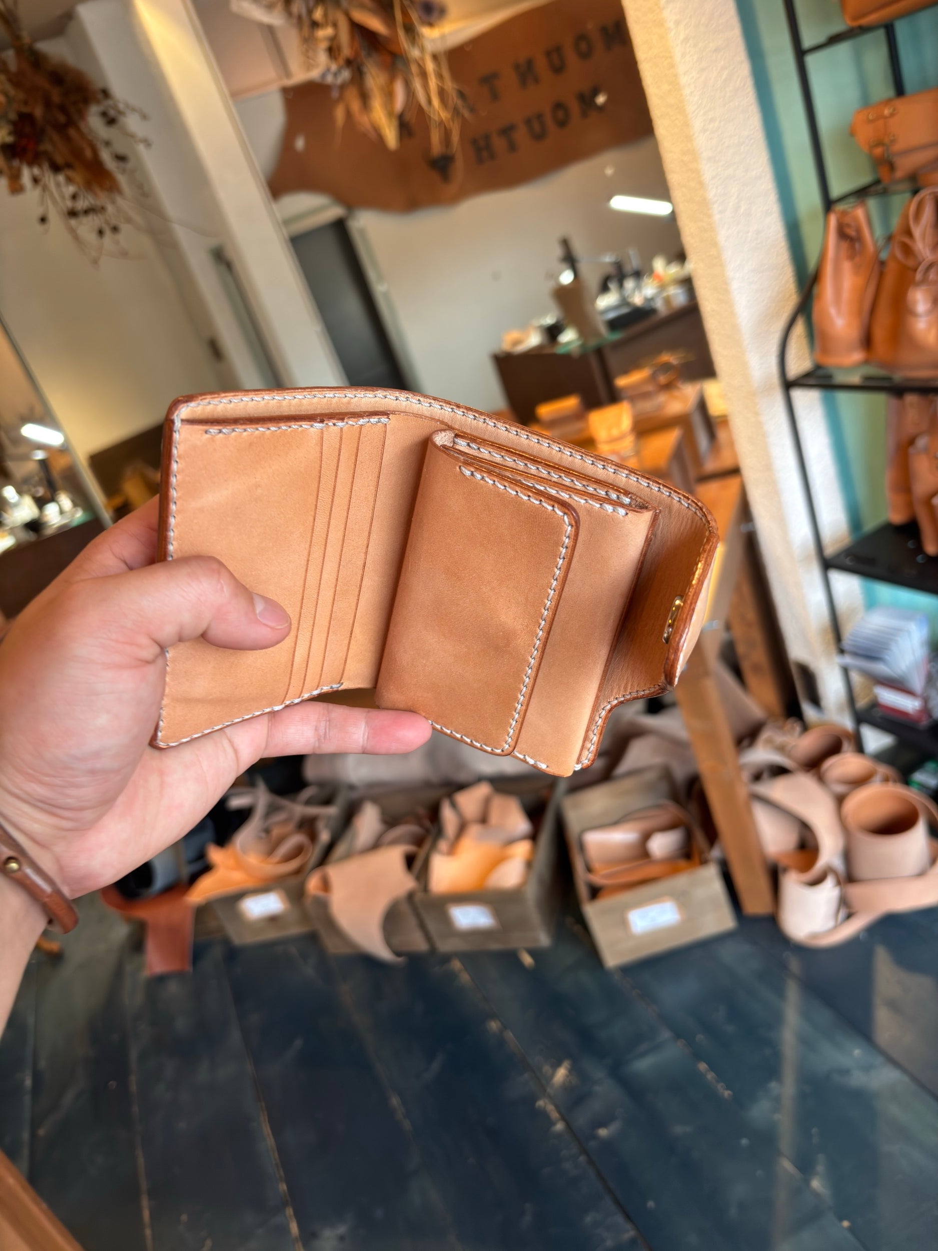 師匠(cottage)のハーフウォレットLが個人的に世界一好きな財布なのでオマージュさせてもらったマウンテンマウスバージョンのハーフウォレットLです。