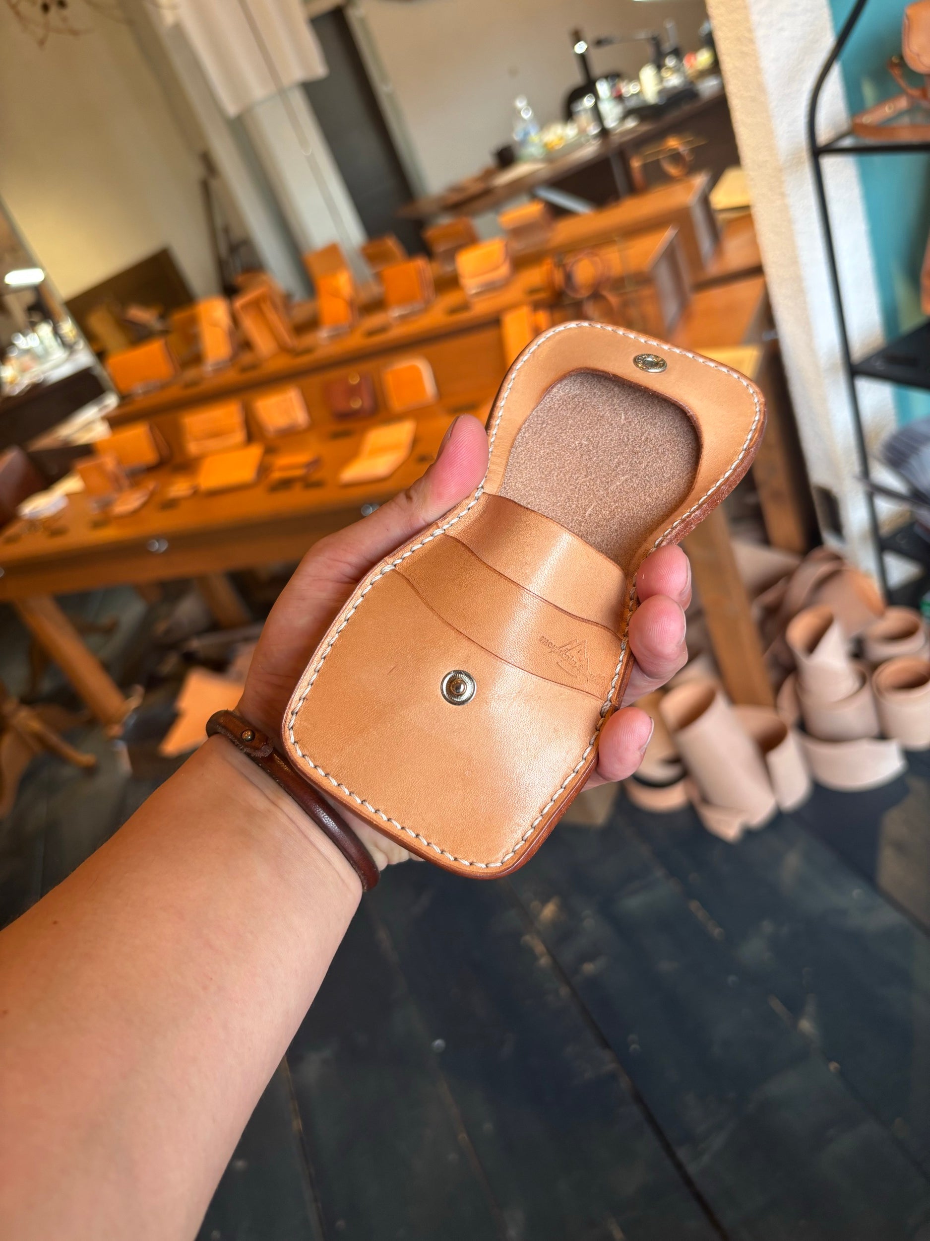 あらゆる技法を詰め込み、デザイン、使い勝手にもこだわりを詰め込んだ自慢のオリジナルミニウォレットです。